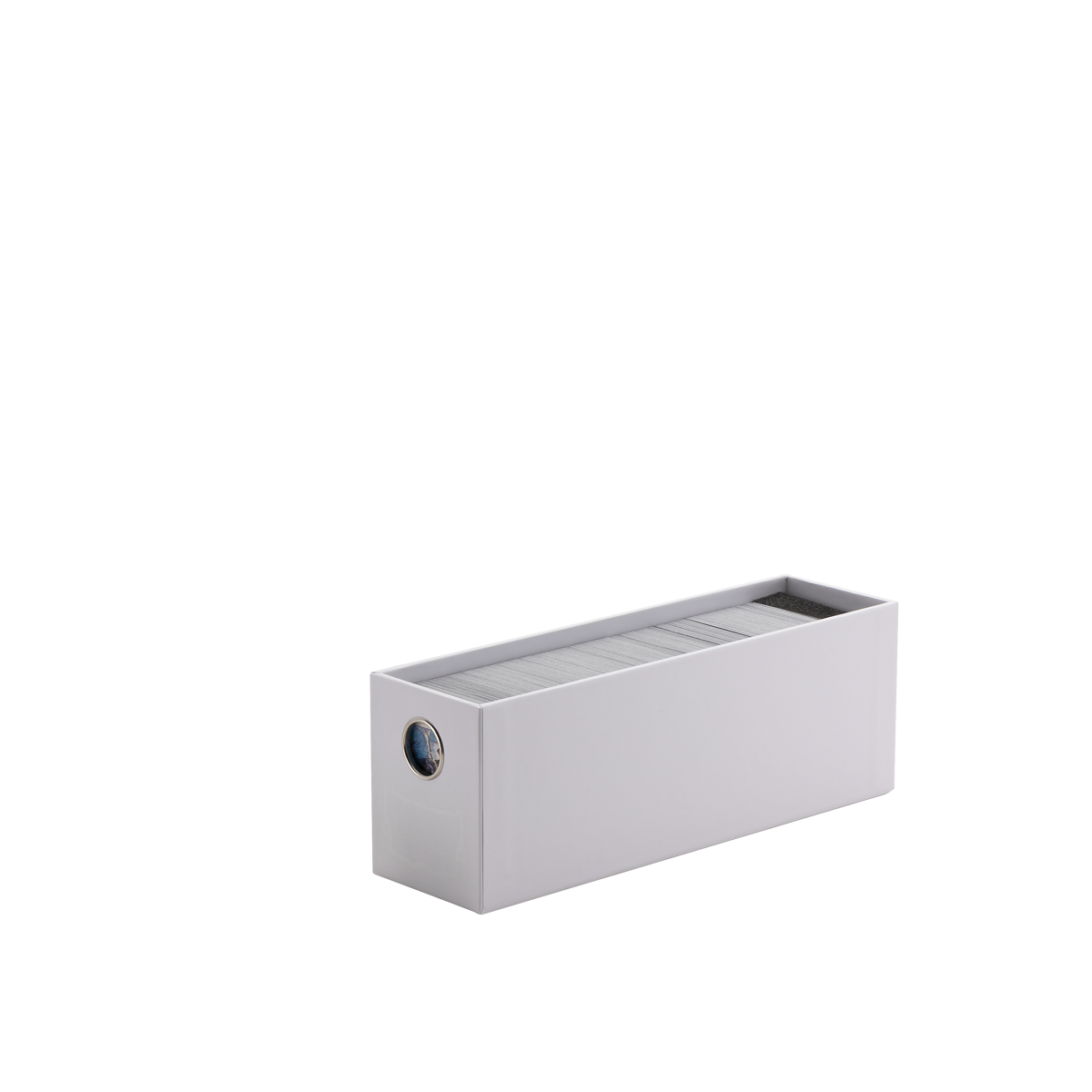 Każda szuflada wyposażona jest w piankowy separator, który pozwala stabilnie ułożyć karty i zabezpieczyć kolekcję. Minimalistyczny design i stonowany kolor sprawiają, że system przechowywania dobrze pasuje do domowej przestrzeni kolekcjonera.